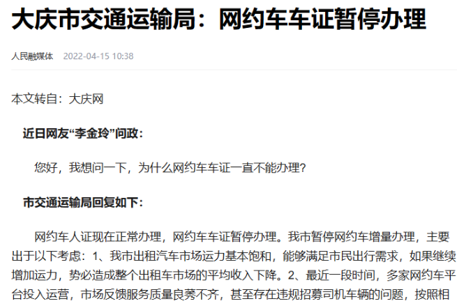 最新消息,又有一个城市开始实施网约车总量动态调控了。